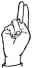 На ћирилици написано НИКОДИЈЕ ВУКАДИНОВИЋ састоји се из 19 слова [?]. Исписано ћириличном једноручном азбуком за глувонеме: